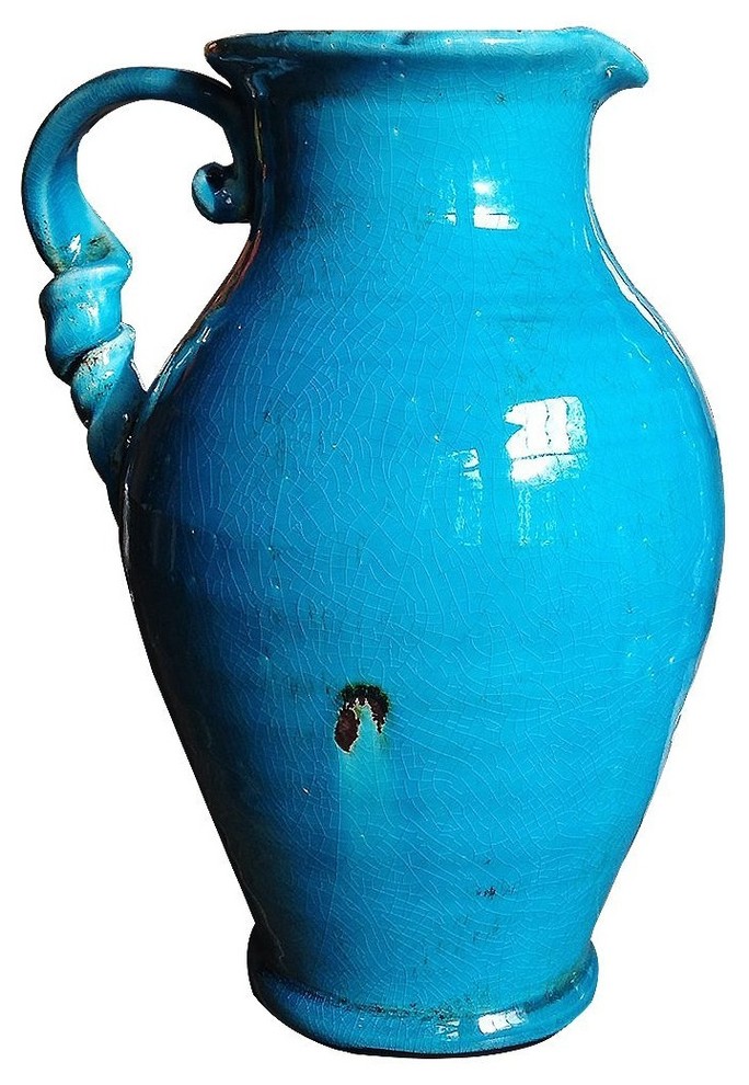 Old World Hand Thrown Heavy Water Jug With Twisted Handle Ancient Aqua Blue Farmhouse Vases By Goodmanandwife Houzz
