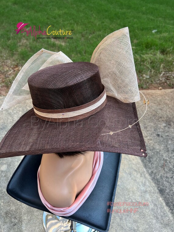 Brown Square Brimmed Hat With Bows Kentucky Derby Hat Etsy